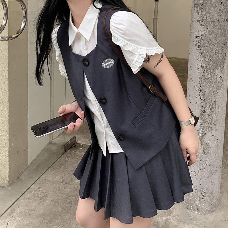 日系學院風顯瘦休閑馬甲+百褶